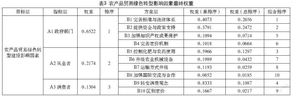 4 基于层次分析法的农产品贸易绿色转型影响因素分析