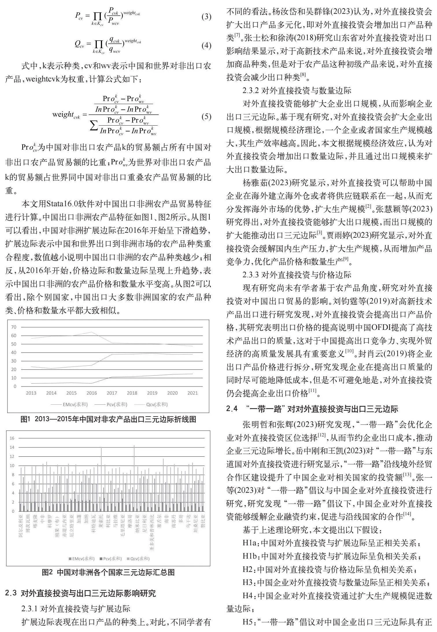 关键词:中非合作:对外直接投资;农产品出口;三元边际;一带一路