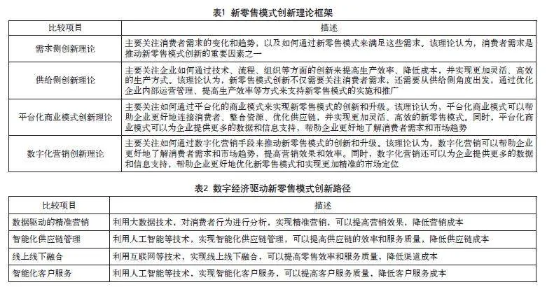数字经济视角下新零售模式创新理论框架如表1所示。
