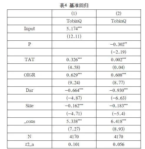 TobinQ=β0+β1Input/P+β2TAT+β3βOIGR+β4Dar+β5 Size+ε