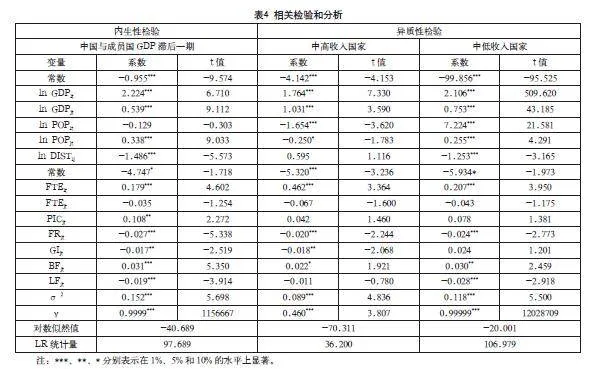 4.2 随机前沿引力模型回归结果