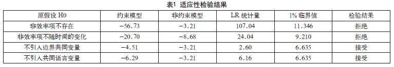 文章采取一步法对跨境电商出口贸易非效率项进行回归估计,得到如下结果: