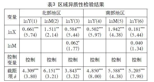 H3:人民币汇率影响碳排放水平以及该过程中出口贸易水平的中介效应具有南北地区的差异。