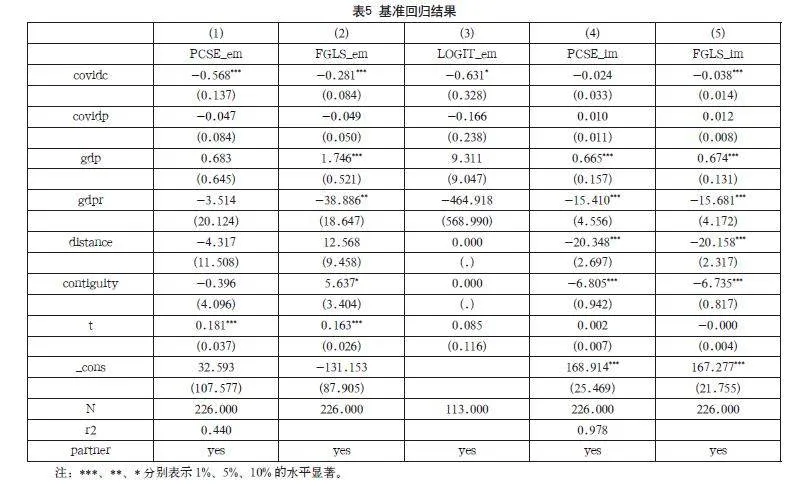 ln(1+EMijt)=∝+∝1lnCOVIDit+∝2ln(1+COVIDjt)+∝3lnGDPjt+∝4ln(1+GDPRt+∝5lnDISTANCEj+∝6CONTIGUITYj+βPARTNERt+εijt(4)