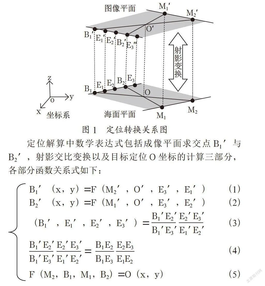 其基本思路是利用成像平面的已知坐标点和目标成像点,通过射影交比不变性解算海上目标坐标点。