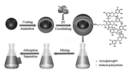 图4 以柿单宁为主要原料的纳米磁性金属吸附剂的制备[10]