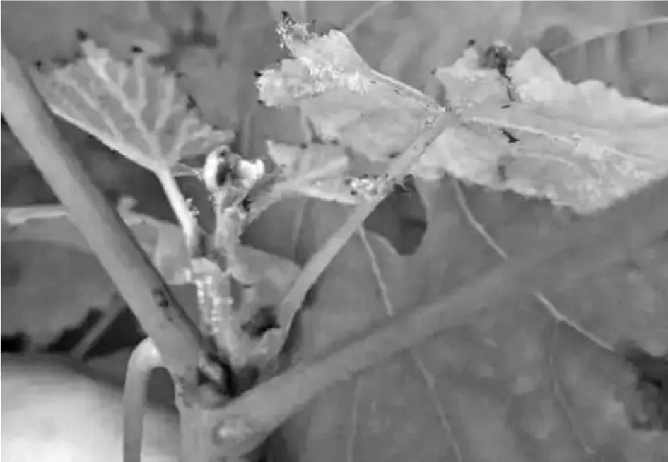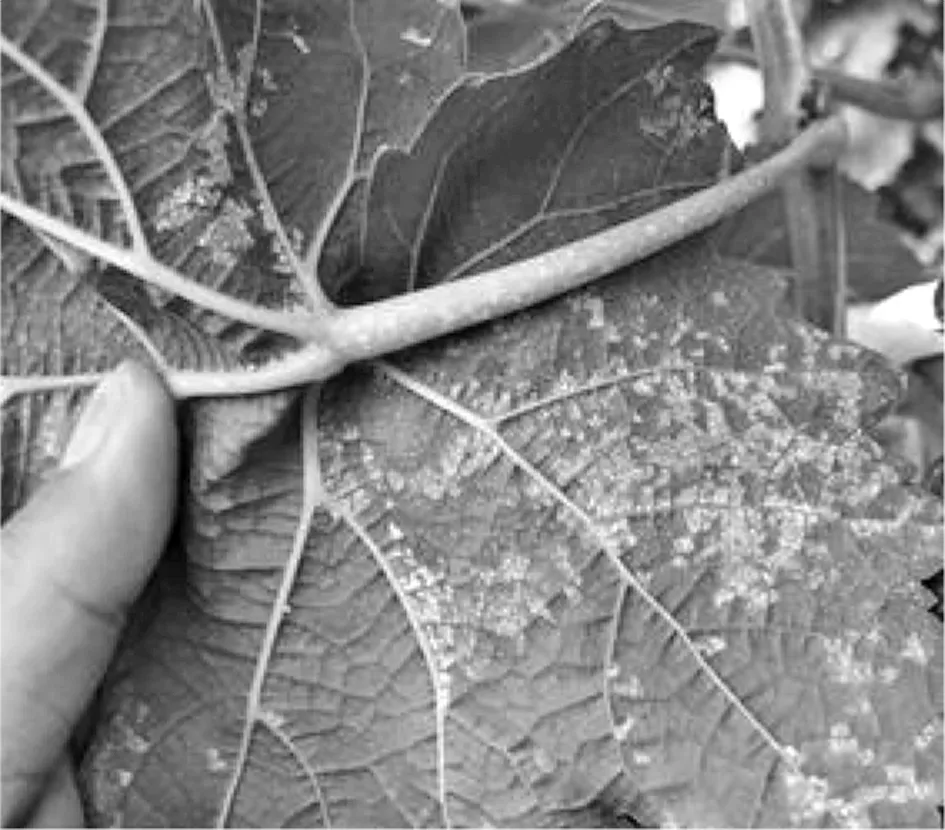 图1 葡萄霜霉病黄色至褐色多角形斑点
