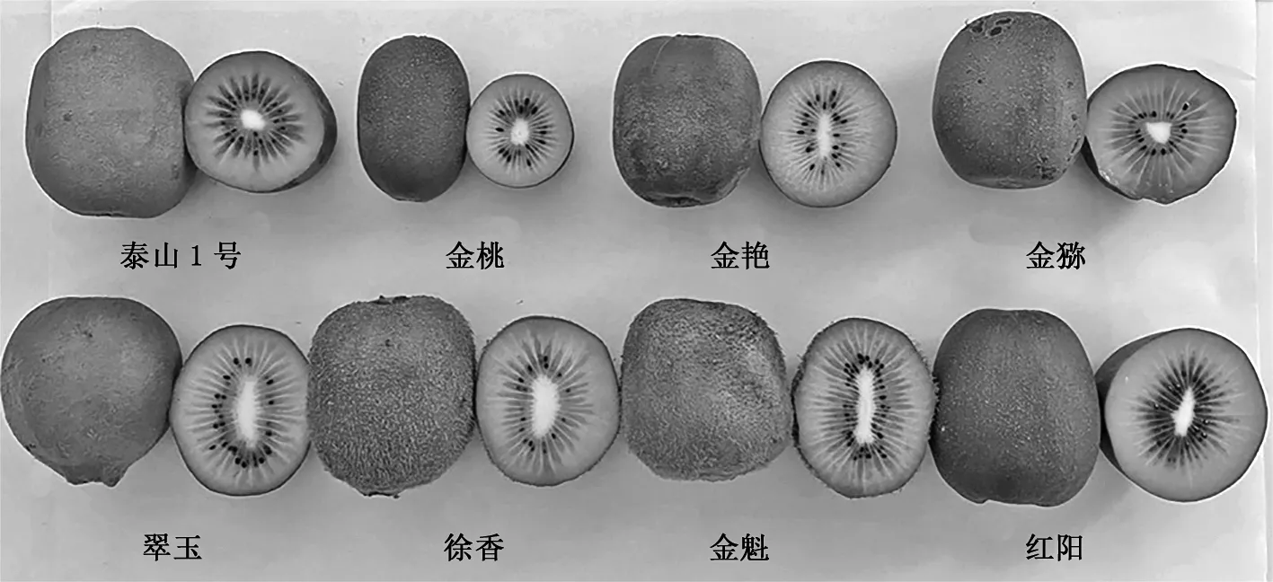 图2 8个猕猴桃品种的果实照片