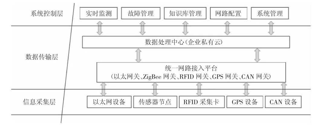 1)信息采集层。主要用于监测设备的生产信息、运输信息、位置信息和状态信息等,为数据传输层提供数据支持。