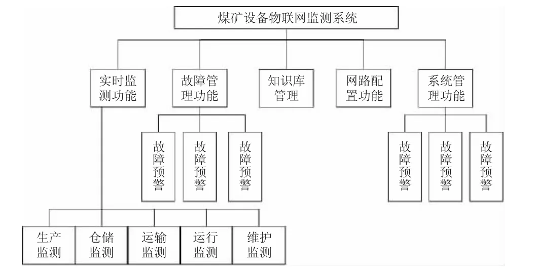 目前,该煤矿还未针对机电设备系统建立状态监测系统。A 煤矿年生产力为1 040 万t 原煤,其生产中涉及的机电设备比较多,有供电设备(如KBSG 系列矿用隔爆型干式变压器等)、采掘设备(如MG200/475-W 采煤机等)、排风设备、排水设备、运输设备(如DTⅡ型带式输送机)、提升设备(如JKB 防爆矿井提升机)、瓦斯抽放设备及其他相关配套设备[1]。煤矿机电设备工作环境比较特殊,实际生产中时常会因设备自身因素、人为因素等的影响引发机电设备故障。因此,亟待建立一套机电设备状态监测系统,对机电设备运行参数及故障易发位置进行实时监测,及时发现设备异常,并采取针对性措施加以解决处理,提高设备检修的效率及质量,为煤矿安全高效生产提供保障。