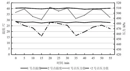 3.2 实验结果在实验装置运行10 min 后,开始采集数据,每5 min 记录一次,共记录1 h 的数据,结果如图2 所示。