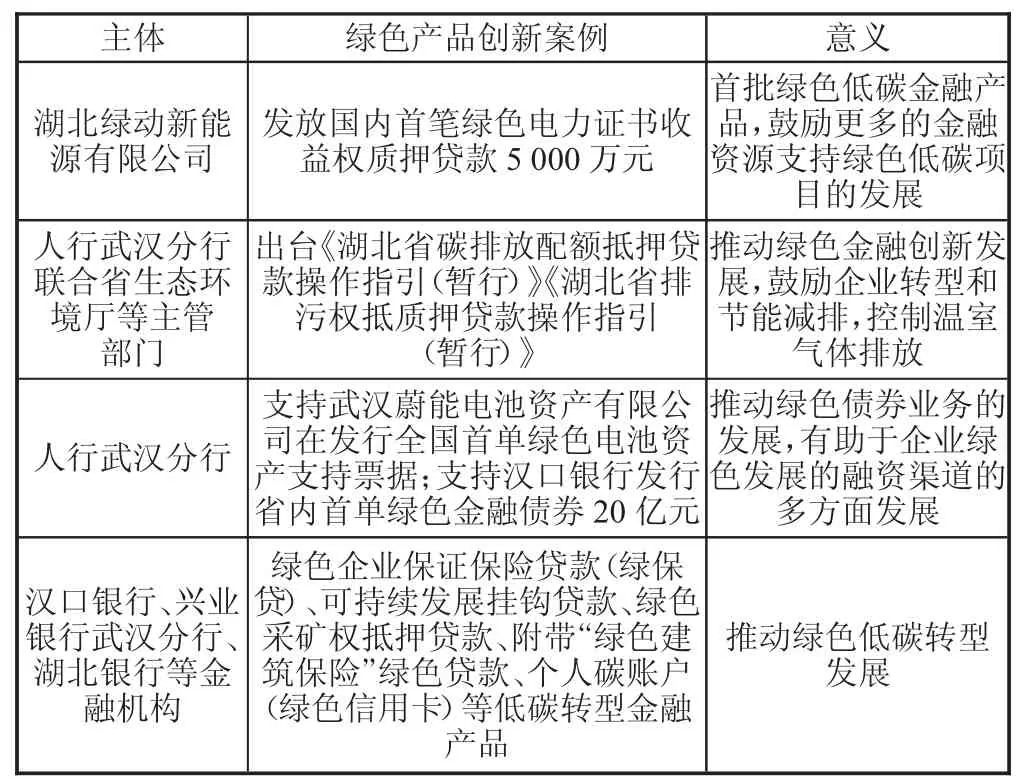 湖北省近年来在面对不同实体项目,结合其企业特点与资金需求,创新设计出许多新型绿色产品。