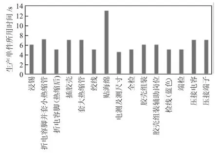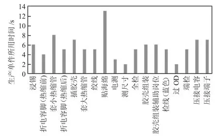 图2 PSS 组装生产线各工位作业时间柱状图