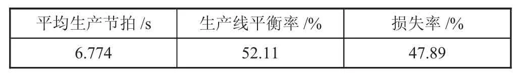 根据表1 数据,得出平均生产节拍为: