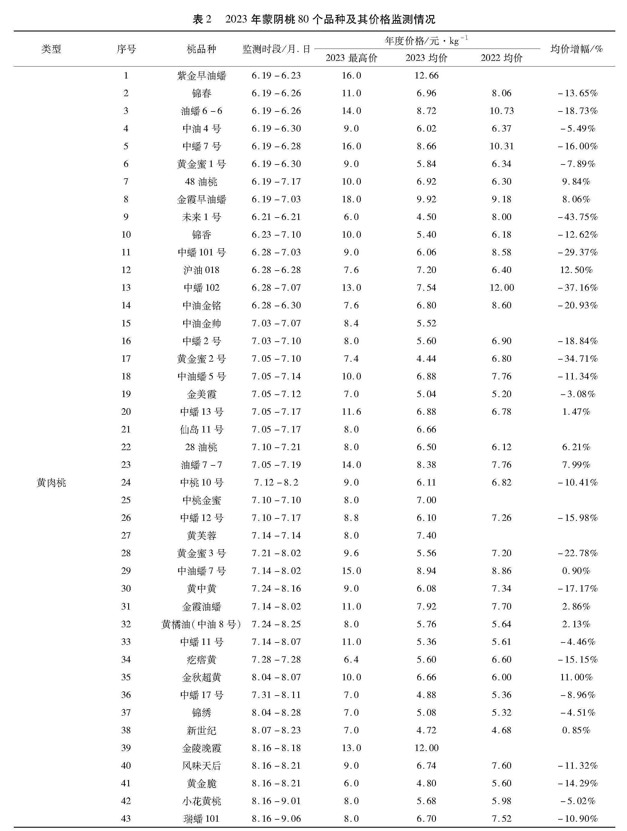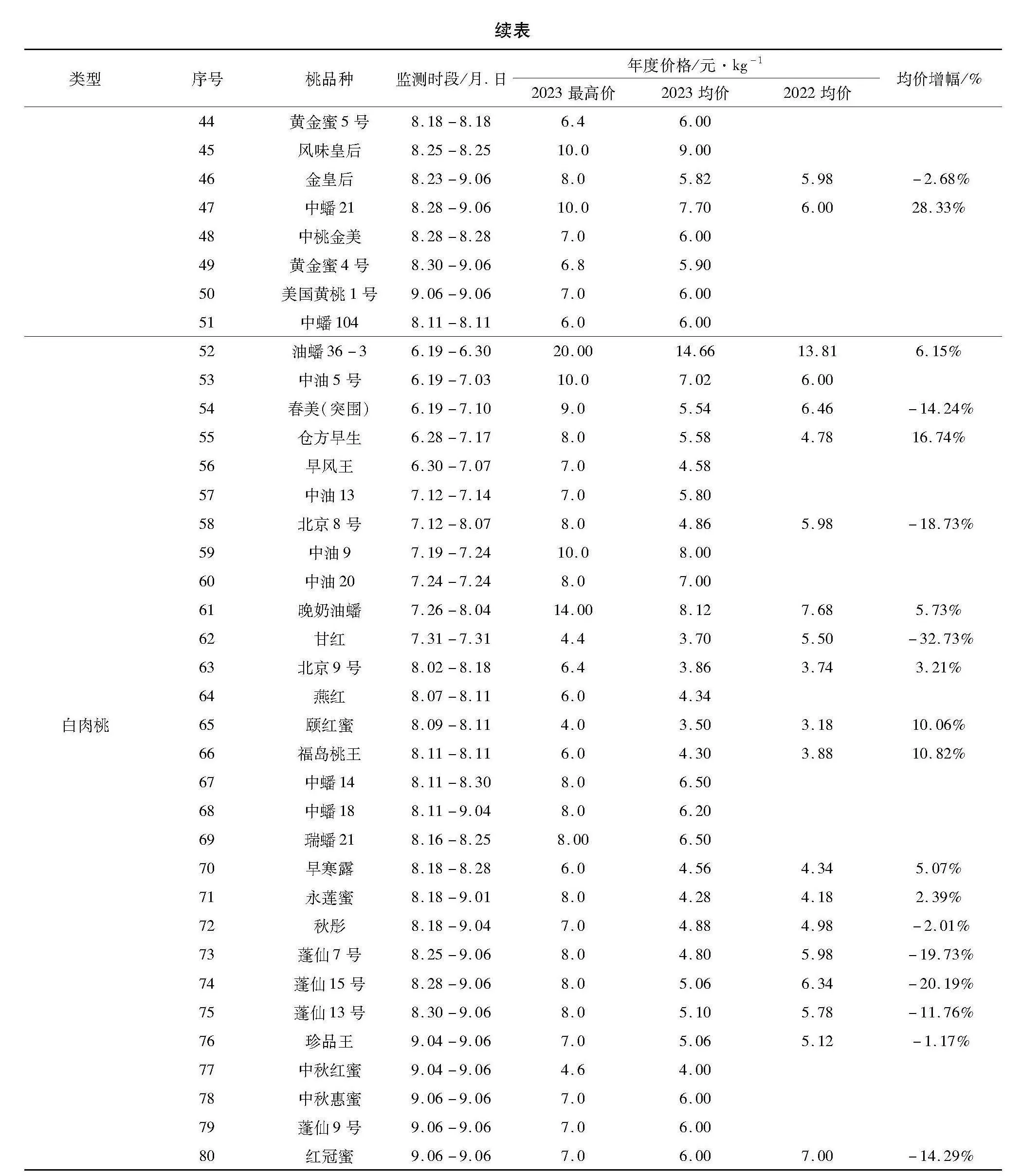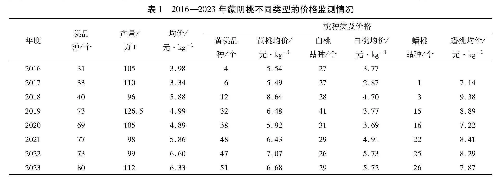 2.1" 2016—2023年桃品种和价格监测信息概况