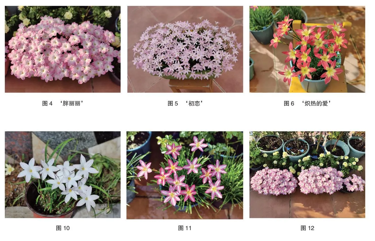 风雨兰,不开花时,形似韭菜,因其常常在春夏阵雨之后突然冒出花苞不久之后随即盛开,而得此名。单朵花型似百合,又称“雨百合”(Rain Lily),花色多样,花型有单瓣、半重瓣及重瓣(图1-3)。