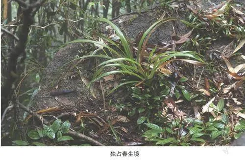 阳春独占春种群约有200余株,生于山地林下岩石上。