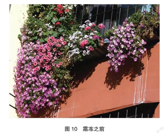 3~4周之后,在矮牵牛幼苗长出6~8片真叶时移苗于10厘米育苗袋中,再养护一个月左右待根系长满即可定植(图5)。牵牛则在根系长满育苗袋,室外最低温度高于5℃时定植,或者在室外温度高于15℃时直接撒播。