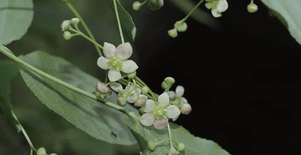 蔷薇科李属落叶乔木,高2~6米。叶片卵形或长圆状卵形,边有尖锐重锯齿。花序伞房状或近伞形,有花3~6朵,花瓣白色,卵圆形。核果红色。花期3-4月,果期5-6月。