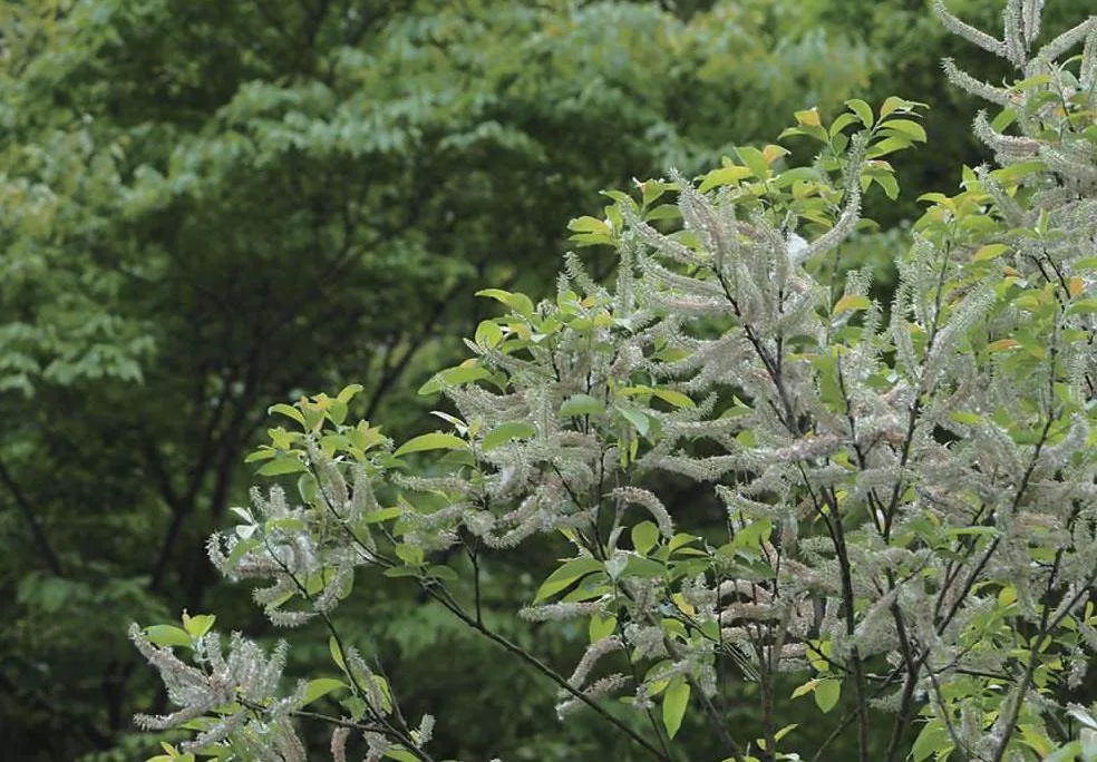 杨柳科柳属灌木或乔木。叶披针形,长圆状披针形,卵状长圆形,狭椭圆形,叶下面密被绒毛。雄花序长1.5~2.5(3)厘米,花药黄色,雌花序圆柱形。花期4-5月,果期5月。