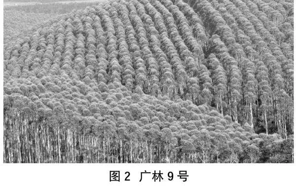 在植树造林作业中,种植技术占据核心地位,是决定林木生死与品质的关键。农作物栽培过程涉及品种筛选、播种、苗床管理、栽植等关键环节,每一步骤均需精密施行。在种子选拔阶段,结合当地气候土壤特性筛选出适宜的良种,在特定区域,巨尾杂交桉DH3229及广林9号(图2)等被采纳为种植资源,该类品种展现出生机勃勃的景象。在播种阶段,以种子特性及土地适宜性为准绳,挑选适宜的种植途径,散布适宜幼树生长的籽粒。同时,播种要选择适宜的树木间距,务必保障光照与通风的充分性。