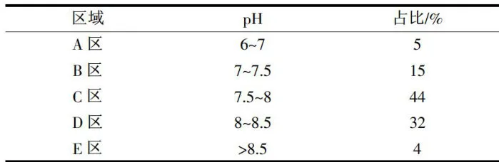 表1某城市道路绿化土壤pH分布由表1数据可以看出,该城市多个区域的道路绿化土壤碱性化。对此,工作人员采取增加酸性物质、添加有机肥等多种方式,有针对性地调节土壤酸碱度,为行道树生长提供有力的保障。