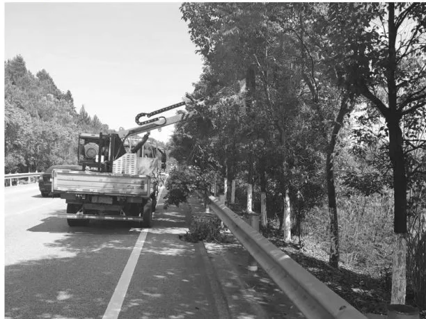 除。将行道树主干基部、伤口周围当年生长的嫩枝、部分根清除,防止影响行道树美观性,避免分散树体养分。行道树修剪如图2所示。