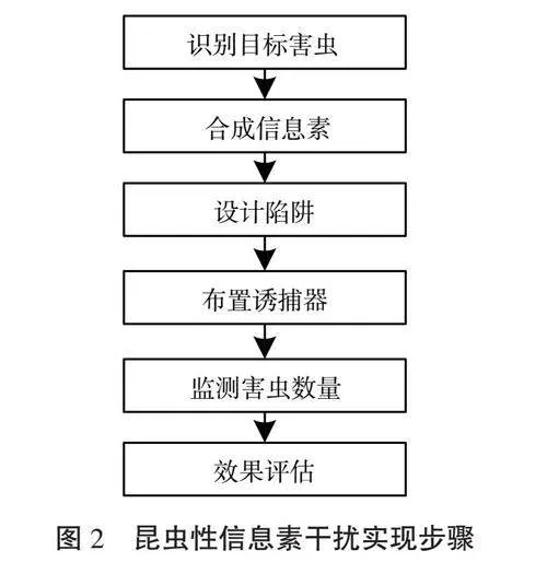 卓尼县通过引进培育害虫天敌、应用昆虫性信息素干扰技术,以控制害虫数量。各类天敌可以有效地控制害虫种群,减少化学农药的使用。昆虫性信息素干扰技术是一种绿色环保的害虫防治方法,通过模拟或干扰昆虫的信息交流,干扰害虫的繁殖行为,从而达到减少害虫数量的目的。昆虫性信息素干扰技术实现流程如图2所示。