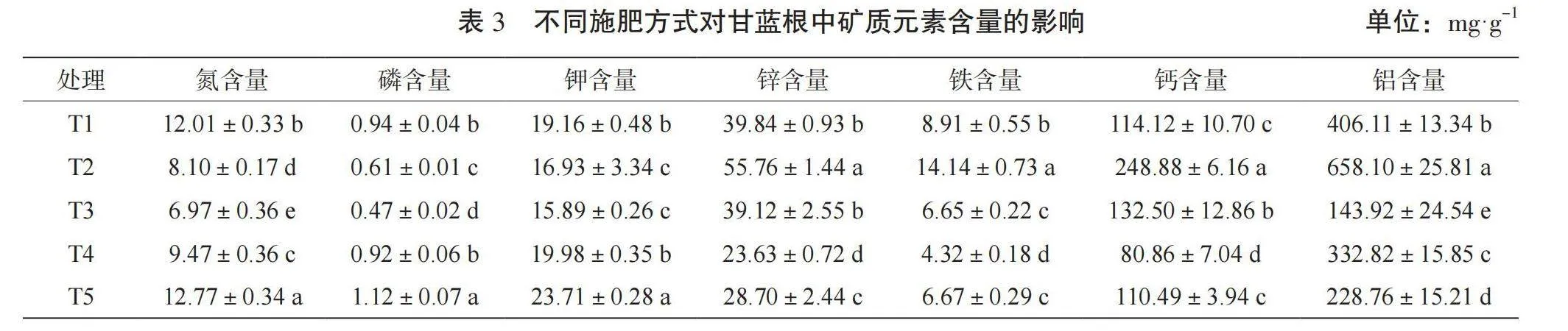 2.3 不同施肥方式对甘蓝根和叶中矿质元素含量的影响