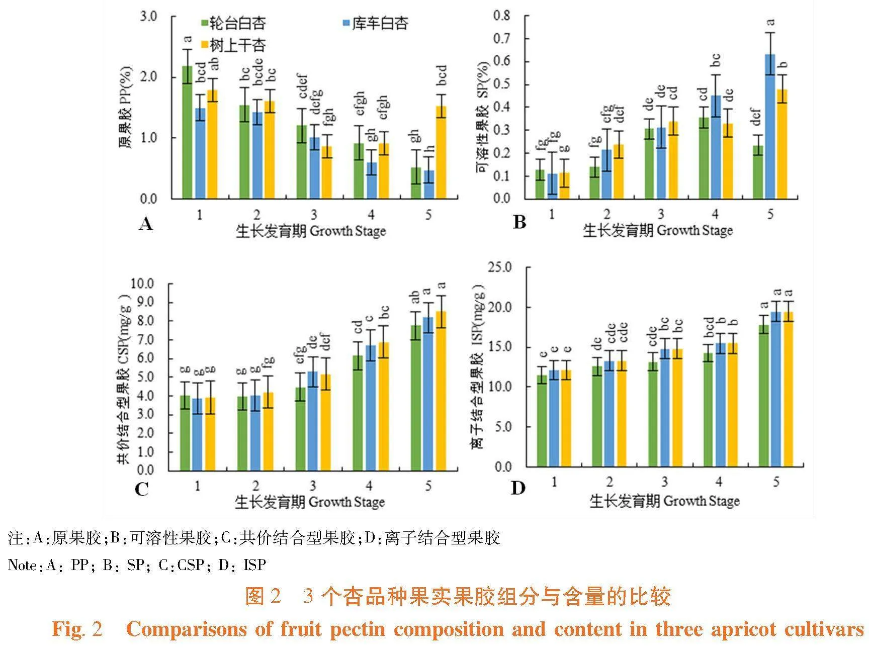 关键词:杏果实;发育;果胶组分;果胶含量