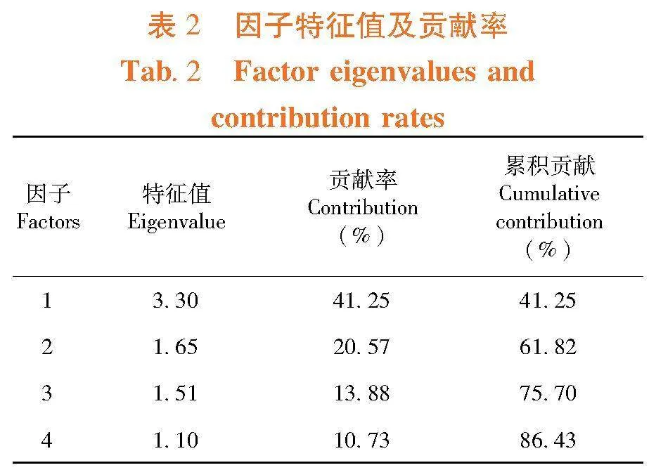式中,Pj代表单个因子贡献率,Wj为该因子在所有公因子中的重要程度。