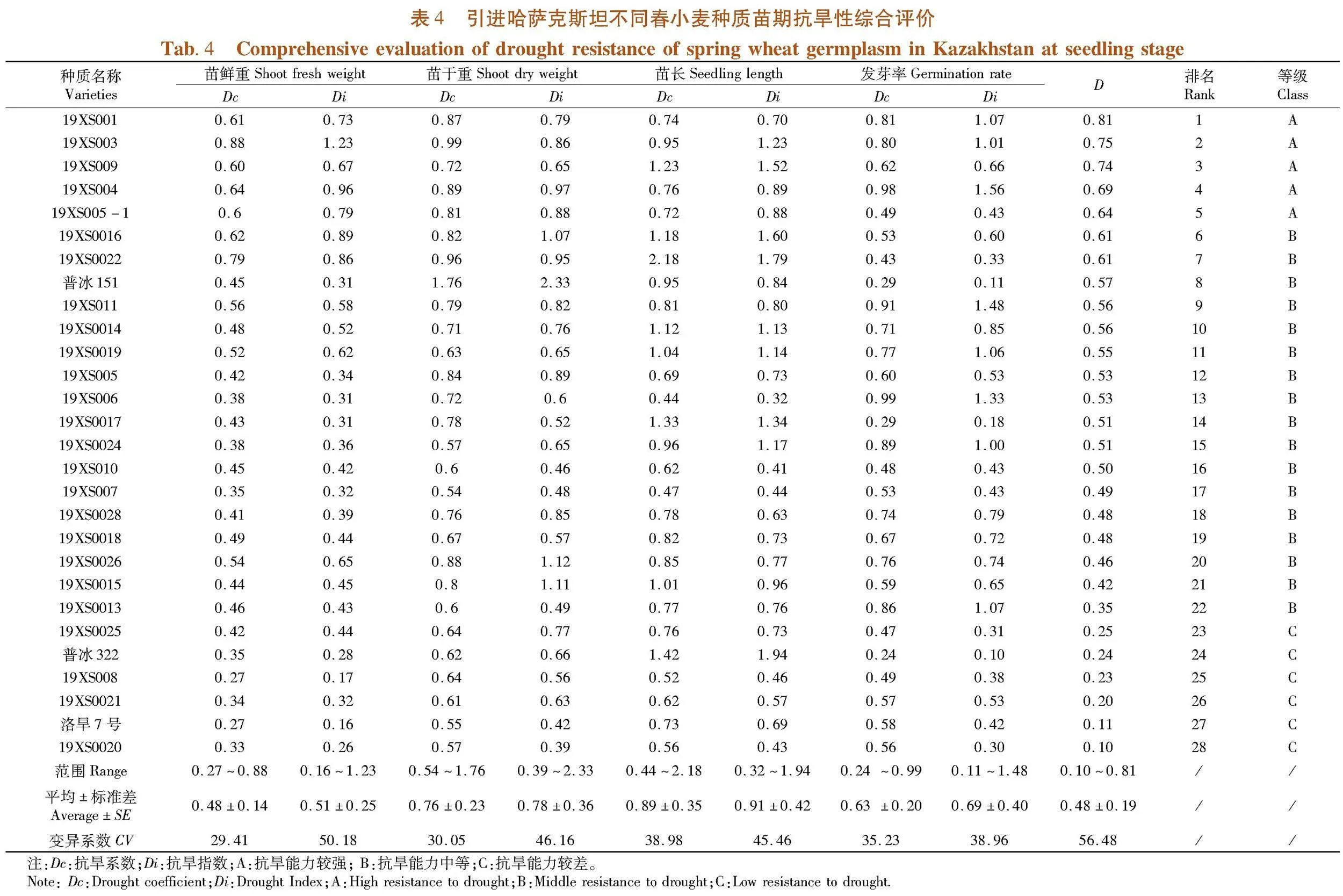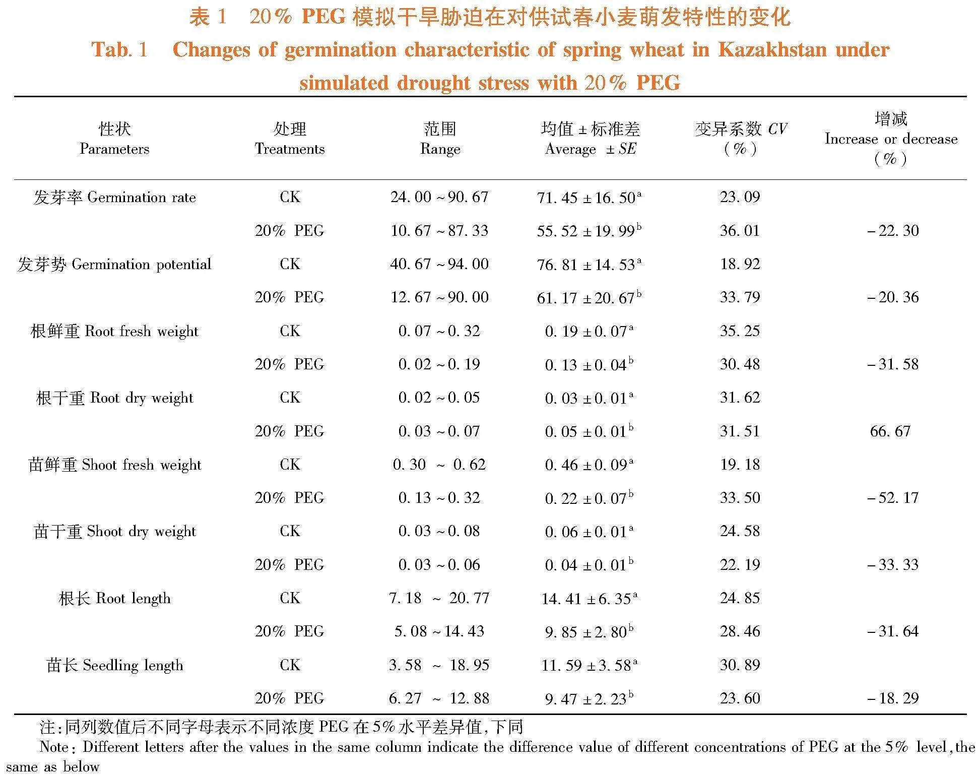 Evaluation of drought resistance of different spring wheat germplasm introduced from Kazakhstan during seedling stage under 20% PEG stress