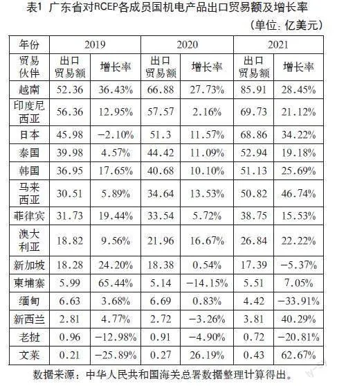 2 广东省对RCEP国家机电产品出口贸易的现状