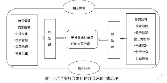 在社会责任治理方面,社会经济活动治理可以分为自治理与“他治理”。其中,自治理是指平台企业的自我管理与内部控制。这主要体现在企业文化的价值观引导、技术管控、公司治理和社会公益等规范和管控自身社会责任行为方面;“他治理”是指政府、第三方机构、社会公众、网络媒体以及行业协会等治理主体从外部对治理对象施加影响与控制。