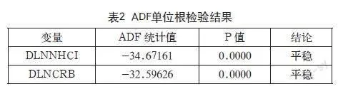 式中,表示NHCI第t期的对数收益率,表示NHCI第t期的对数收盘价格。表示CRB第t期的对数收益率,表示CRB第t期的对数收盘价。