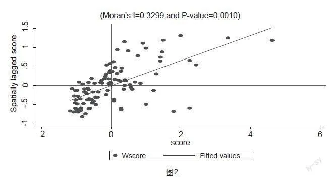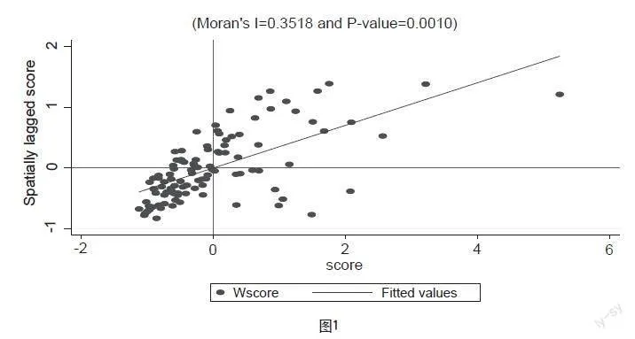 在构建模型之前,需进行变量空间自相关检验。现有主流研究主要使用莫兰指数)进行全局和局部自相关检验。