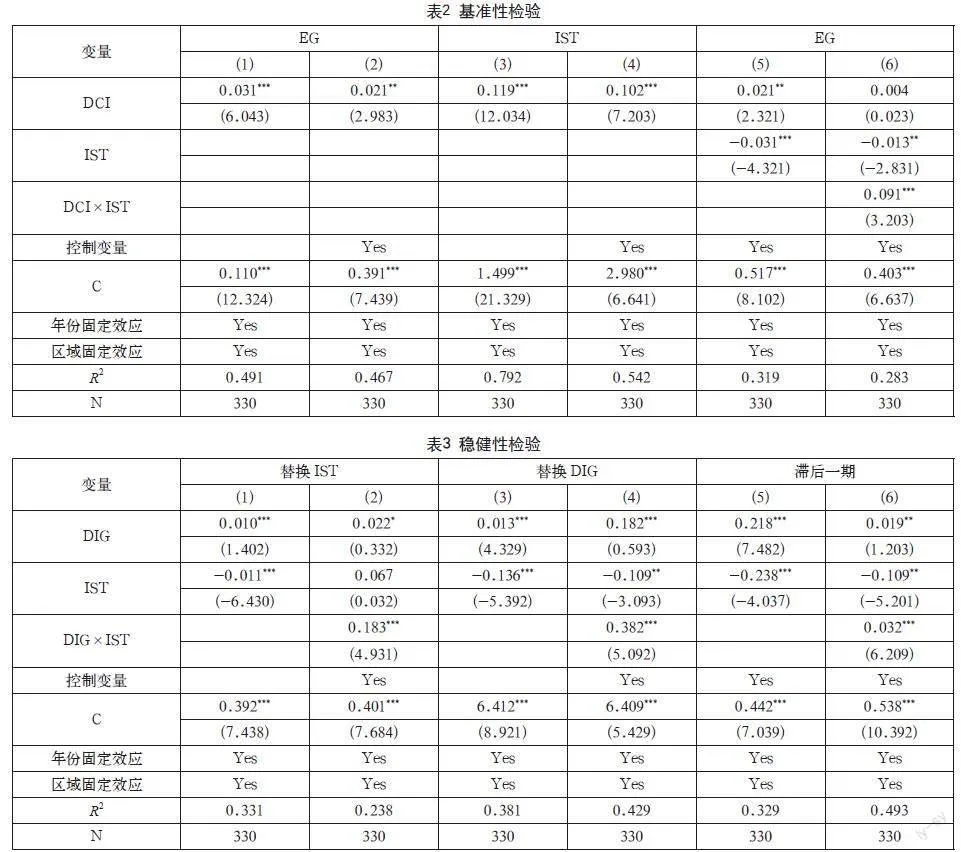 模型(3)在模型(1)和(2)的基础上加入了交互项,通过数字产业和产业结构优化的交叉项,进而判定产业数字化是否存在区域“稳增长”效应。