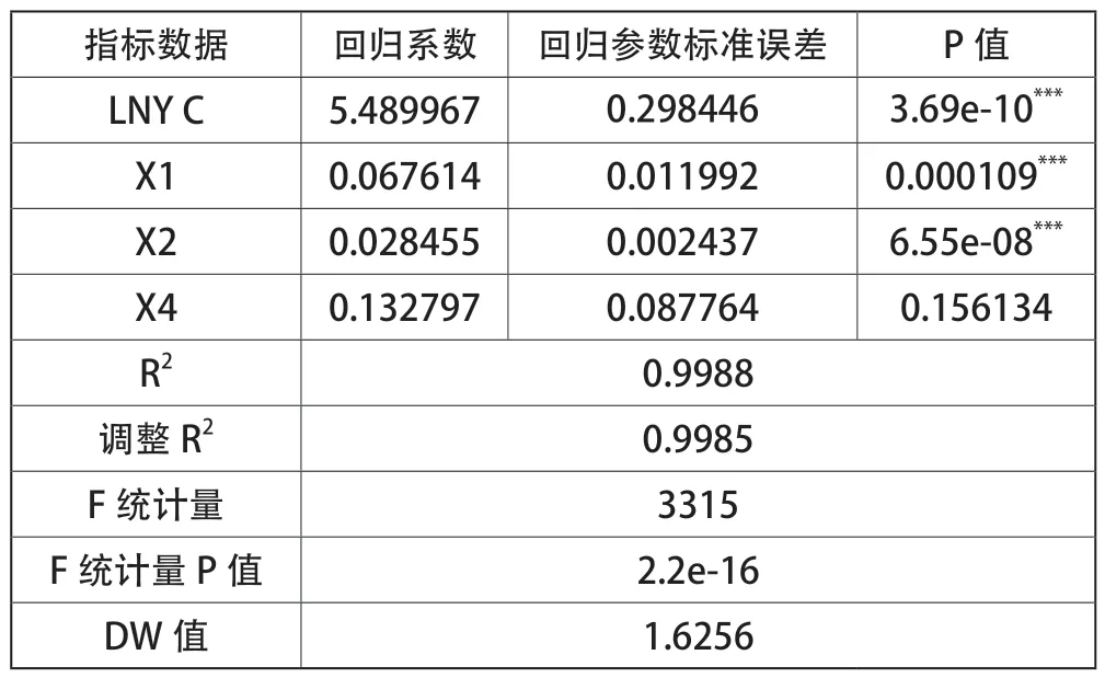 表2 调整后安徽省城镇化对经济增长影响的多元模型回归结果