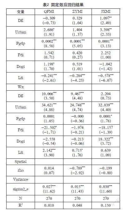4.1 空间计量回归结果分析