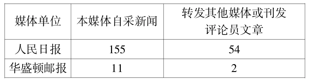 图3:《人民日报》和《华盛顿邮报》报道数量统计
